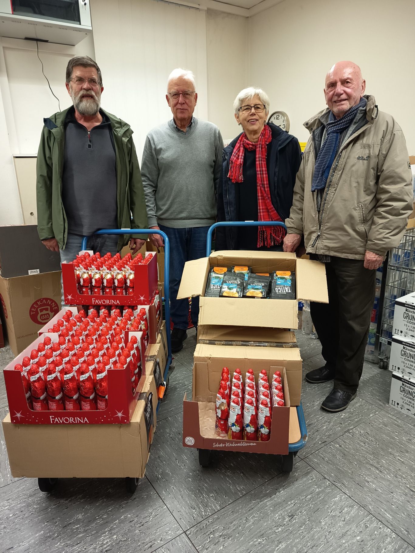 Seit 10 Jahren spendet die Grüne Alternative (GAH) der Tafel CariTasche in Hemer in der Weihnachtszeit zur Verteiliung an deren bedürftige Klientel Dinge zur Verschönerung der Festtage. Obwohl sich in diesem Jahr die Preise besonders für Schokolade und Kaffee fast verdoppelt haben, wurden für 150 Personen Schoko-Nikoläuse und Kaffeepäckchen übergeben werden. Bei dieser Gelegenheit berichtete der langjährige Vorsitzende der Tafel Josef Radine über die vielen Schwierigkeiten, auf welche die ehrenamtlichen Mitglieder immer wieder stoßen, ohne in ihrem Engagement nachzulassen. Die GAH versicherte, die CariTasche auch weiterhin zu unterstützen.